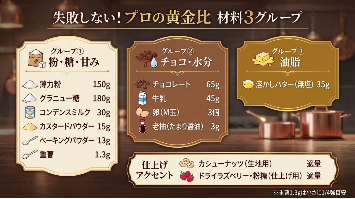 - チョコの重さに負けない、プロの黄金比(150gベース)