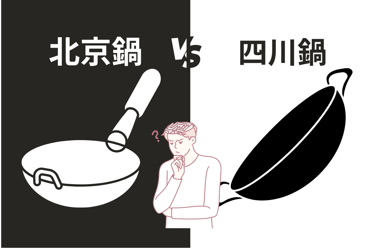 中華鍋には、片手ハンドルの「北京鍋」と、両手取っ手の「四川(広東)鍋」があります。一見似ていますが、使い勝手は大きく異なります。